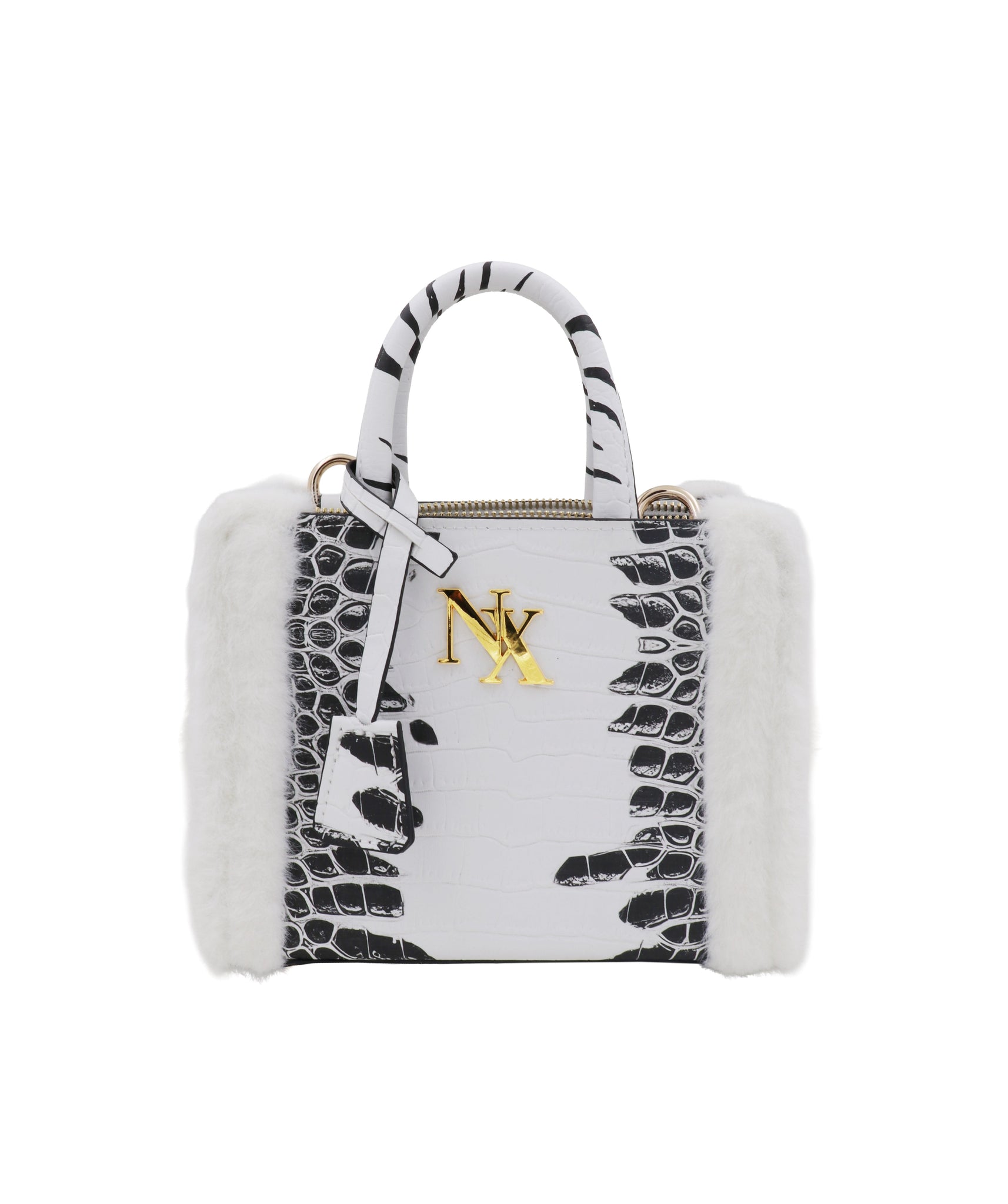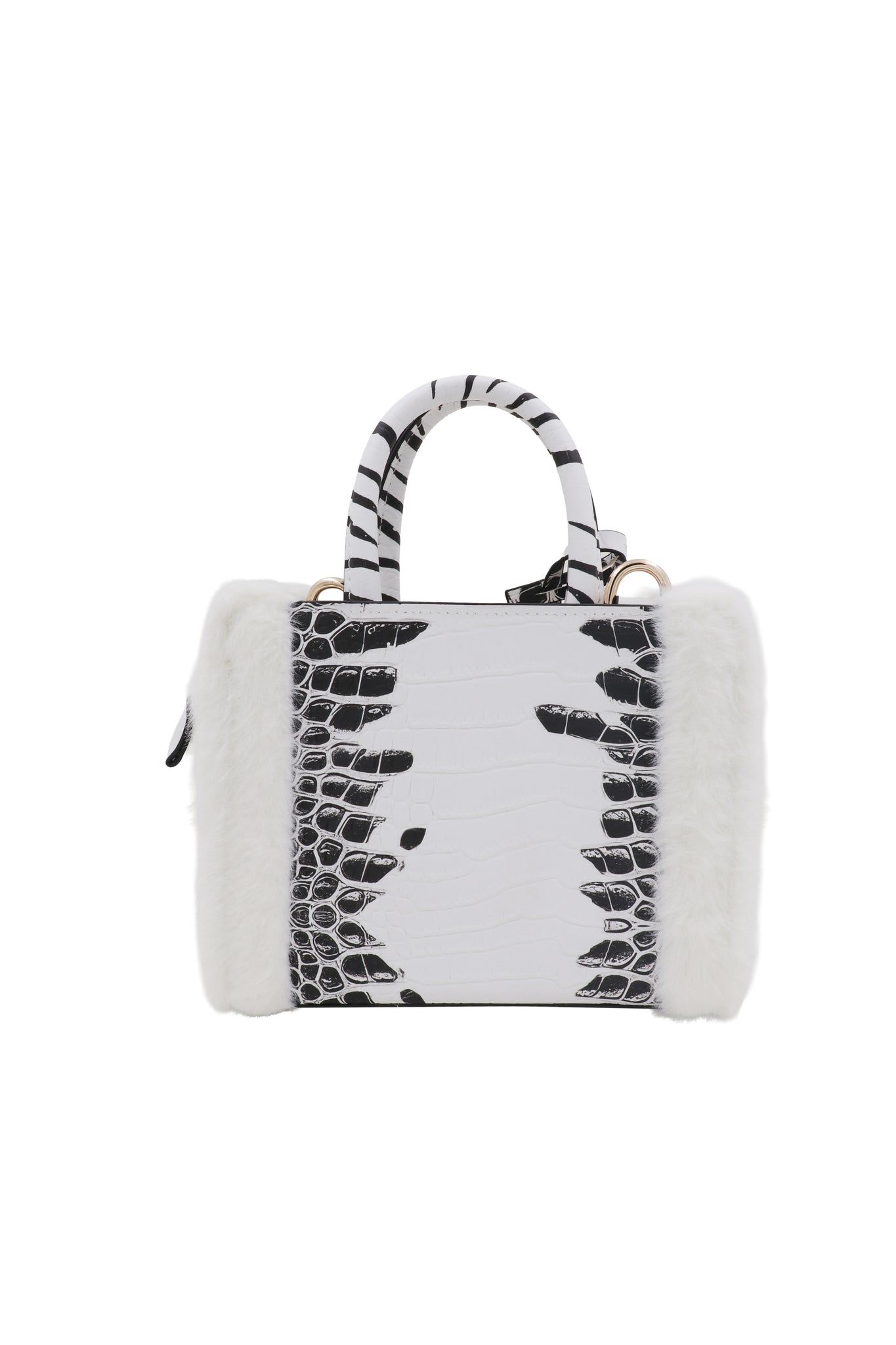 matte croc finish with pure white fur trim